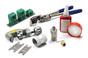 خمیر لوله ، برش لوله ، ابزارهای قابل حمل لوله برای دست زدن به لوله ها ، سنجهای بازرسی شکاف و ابزارهای پیش نمایش مورد نیاز برای نصب اتصالات لوله و همچنین لوازم جانبی آب بندی لازم برای نصب اتصالات لوله وجود دارد.